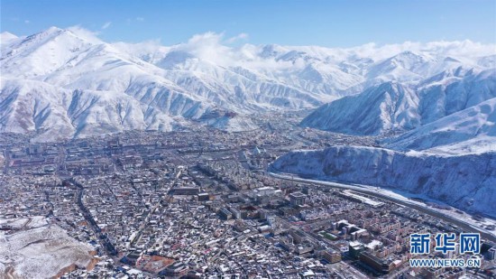 站在海拔近4000米的當(dāng)代山山頂,鳥瞰玉樹新城,扎曲河、巴塘河穿城而過,一座座色彩明快的藏式住宅沿著山勢向谷地蔓延開來,四縱十六橫的馬路上車輛川流不息。