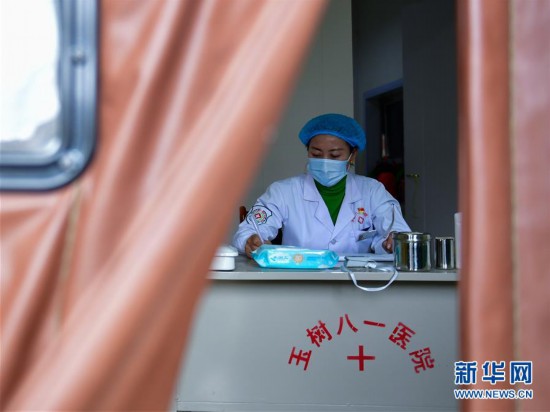 青海省玉樹藏族自治州八一醫(yī)院醫(yī)生索南永吉在門診值班(3月28日攝)。 新華社記者 張龍 攝