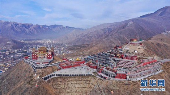這是青海省玉樹藏族自治州結(jié)古寺全景(4月2日攝,無人機(jī)照片)。新華社記者 吳剛 攝