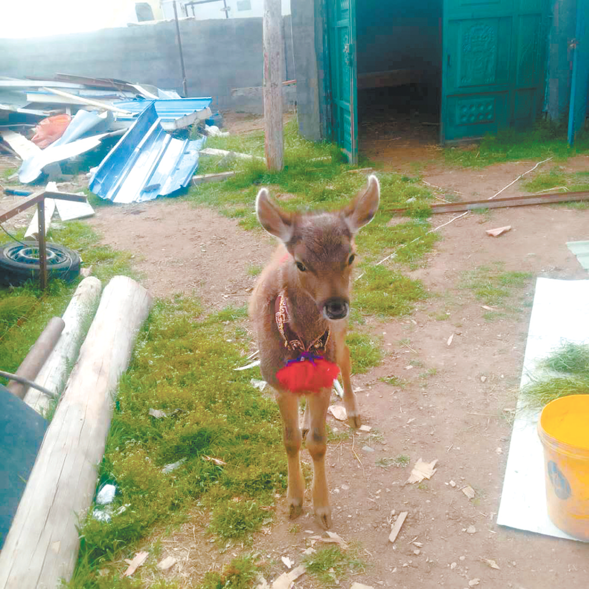 才讓說,去年7月份,他救助了一只陷在濕地中的小白唇鹿,這只白唇鹿出生還不到一個月,救助出來后發(fā)現(xiàn)腿上受傷,帶回家養(yǎng)了幾天,腿上的傷痊愈后,便放回鹿群。
