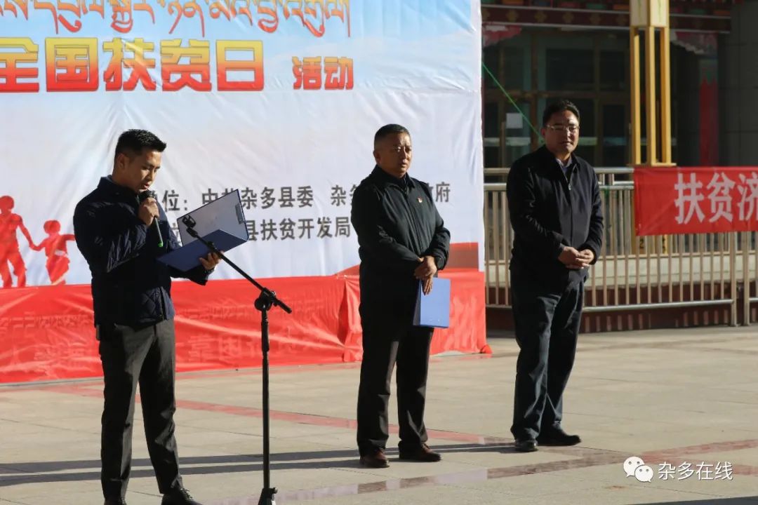 10月17日上午9:30,由縣委、縣政府主辦的以“扶貧大家?guī)停餐夹】怠睘橹黝}的“扶貧日”活動在雜多縣蟲草廣場隆重舉行,全縣500余名干部群眾參加了活動??h委常委、統(tǒng)戰(zhàn)部長扎西東周、縣人大副主任巴吾、縣政府辦主任尕松及各單位負責人出席活動,縣委常委、統(tǒng)戰(zhàn)部長扎西東周在活動上致辭。