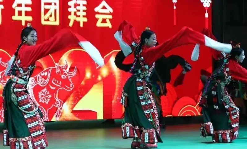 團拜會上,舉行了豐富多彩的文藝演出,為元旦佳節(jié)增添了歡樂祥和的美好氛圍。文藝演出在喜慶熱鬧開場舞《伊舞風(fēng)采》中拉開帷幕。整臺晚會形式多樣,獨唱《再唱山歌給黨聽》《瀾滄江我的母親河》,電子琴笛子合奏《美麗的草原我的家》,合唱《故鄉(xiāng)格吉》,山歌演唱《格吉薩松扎》等20個節(jié)目表演將晚會推向了高潮。整場文藝演出體現(xiàn)了中華民族優(yōu)秀傳統(tǒng)文化在雜多大地的傳承、弘揚與發(fā)展,彰顯了我們的文化自信,表達了雜多人民意氣風(fēng)發(fā)、沿著新時代中國特色社會主義道路奮勇前行、努力實現(xiàn)“五個雜多”愿景的壯志豪情。