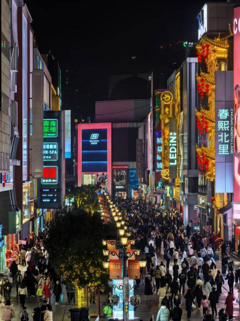 图为2025年1月18日晚,春熙路街道游人如织。求是杂志社 张阳/摄