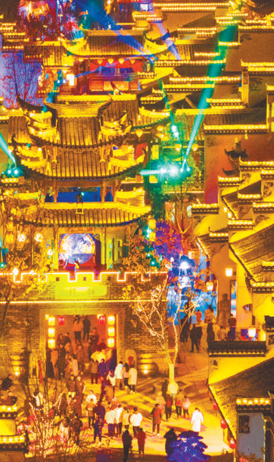 湖北孝感市云梦县祥云湾景区灯火通明、游人如织。胡学军摄(人民视觉)