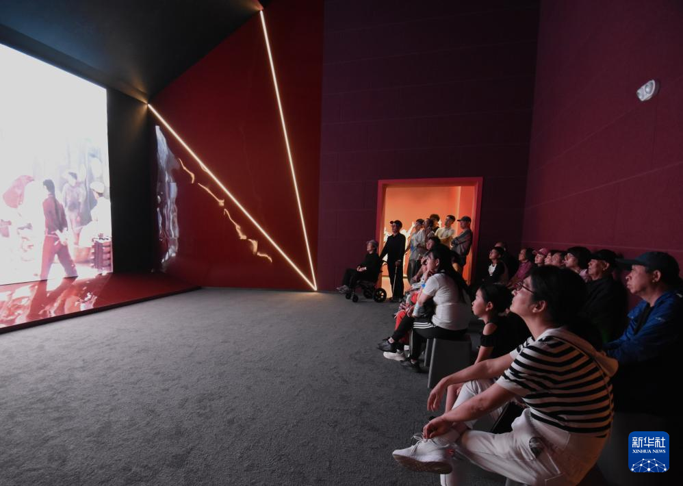 游客在纪念馆内欣赏经典电影《红色娘子军》。新华社记者刘邓 摄