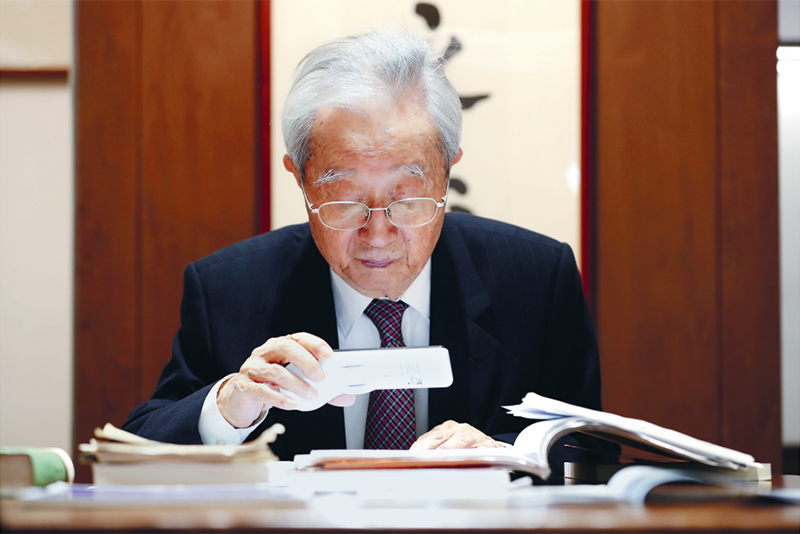 “不自满,不偷懒”,是张晋藩的治学名言。如今95岁高龄的他视力严重下降,但仍借助高倍放大镜,坚持阅读写作、指导研究生论文。在中华人民共和国成立75周年前夕,国家主席习近平签署主席令,授予他“人民教育家”国家荣誉称号并亲自颁授。