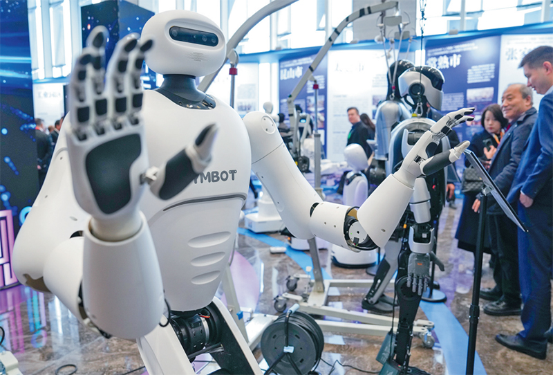 2025年苏州市“人工智能+”创新发展推进大会暨人工智能赋能新型工业化深度行(苏州站)活动于2月14日举行,本次活动以“共启AI+新质赋未来”为主题,集中展示苏州人工智能领域发展情况。图为在活动现场展示的人形机器人。 新华社记者 李博/摄