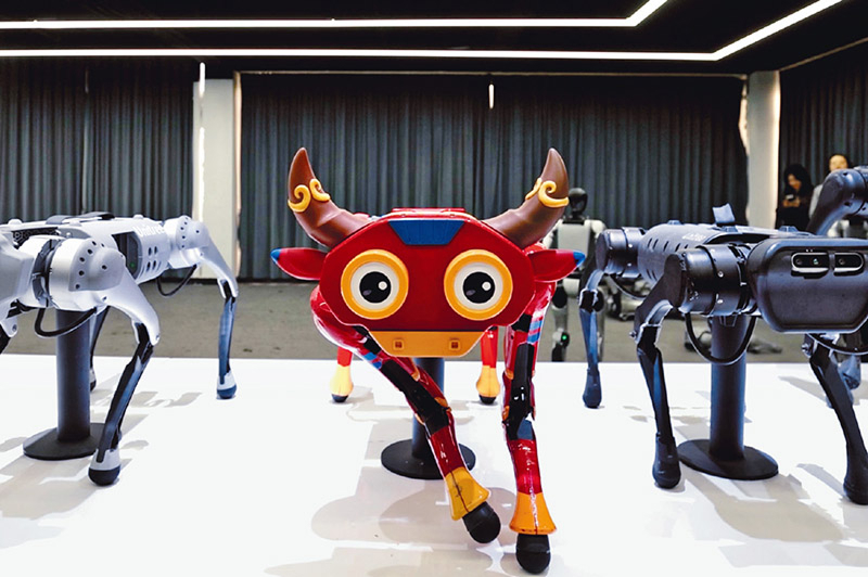 近年来,在科技创新的竞技场上,广大民营企业展现出蓬勃的生命力,为中国经济高质量发展注入强大动能。图为2024年11月7日拍摄的杭州宇树科技有限公司展厅内的四足机器人。 新华社记者 韩栋晖/摄