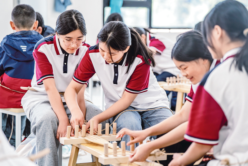 近年来,各地立足当地红色文化资源优势,组织学生以红色旧址遗迹为“教室”,以文物史料为“教材”,开展“行走的思政课”主题教育活动。图为2025年5月12日,云南省昭通市威信县第一中学学生在红色研学实践基地体验编织草鞋,在实践互动中重温红色革命历史。 新华社记者 胡超/摄
