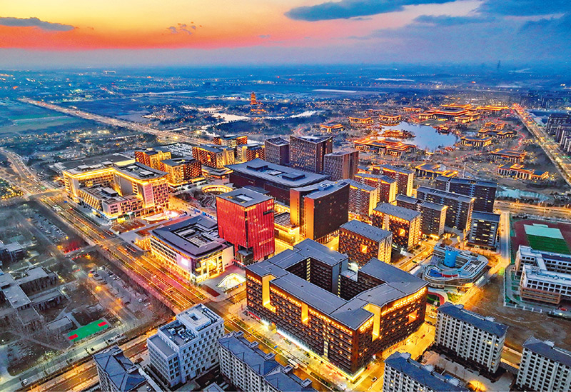 设立河北雄安新区,是以习近平同志为核心的党中央作出的一项重大决策部署。“十四五”规划对高标准高质量建设雄安新区作出重要部署。从“一张白纸”到拔节生长,雄安新区这座未来之城正展现出勃勃生机。图为2025年3月15日拍摄的雄安商务服务中心夜景。 新华社记者 牟宇/摄