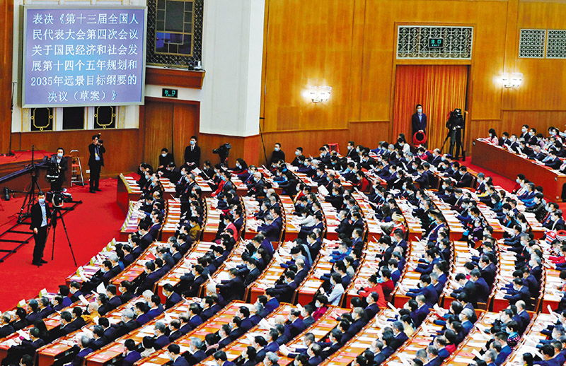 “十四五”规划是开启全面建设社会主义现代化国家新征程、向第二个百年奋斗目标进军的第一个五年规划。图为2021年3月11日,十三届全国人大四次会议表决通过关于国民经济和社会发展第十四个五年规划和2035年远景目标纲要的决议。 新华社记者 张玉薇/摄
