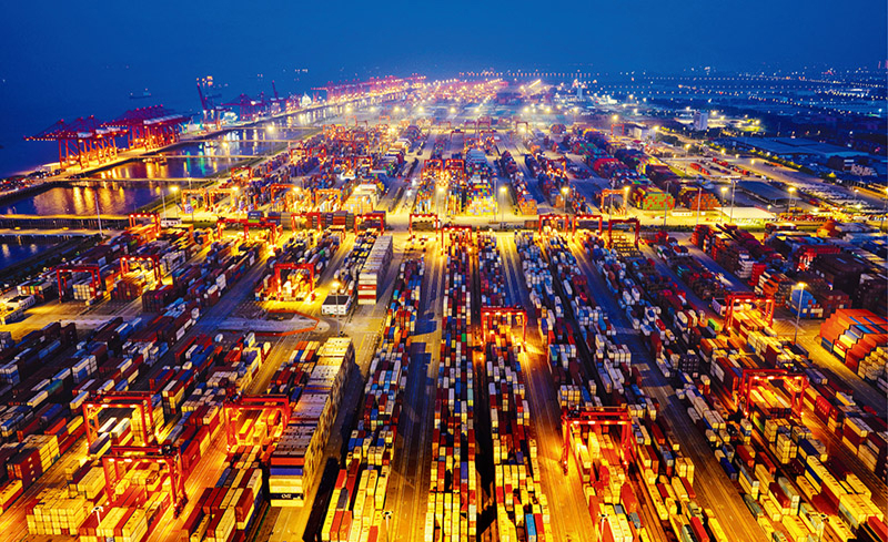 江苏作为改革开放的前沿阵地,必将在进一步全面深化改革开放中积蓄高质量发展的更大推动力。图为2025年5月18日,江苏太仓港集装箱码头一片灯火通明,作业繁忙。 人民图片 方东旭/摄