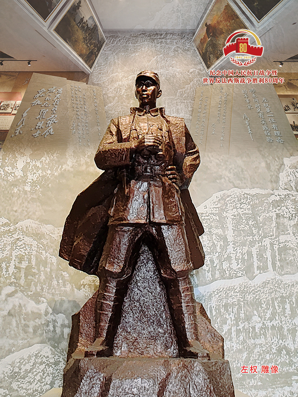 全民族抗战爆发后,左权任八路军副参谋长、八路军前方总部参谋长,后兼任八路军第二纵队司令员,协助朱德、彭德怀指挥八路军开赴华北抗日前线,粉碎日伪军“扫荡”。1940年秋,协助彭德怀指挥百团大战。1941年11月,指挥八路军总部特务团进行黄崖洞保卫战,经8昼夜激战,以较小代价歼敌千余人,被中央军委称为“反‘扫荡’的模范战斗”。左权“是一个有理论修养同时有实践经验的军事家”,从1939年至1941年,撰写了《论坚持华北抗战》等文章40余篇,为创建并巩固华北抗日根据地、发展壮大人民抗日武装,为八路军的全面建设,建立了不朽的功勋。1942年5月25日,左权在山西辽县麻田附近指挥部队抗击日军、掩护中共中央北方局和八路军总部等机关突围转移时,在十字岭战斗中壮烈牺牲,年仅37岁。