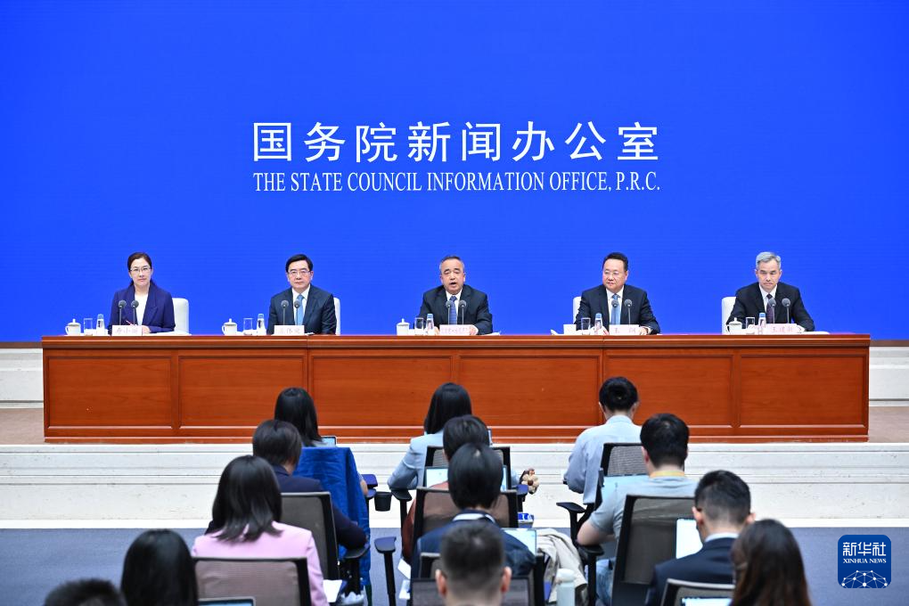 9月19日,国务院新闻办公室在北京举行新闻发布会,发布《新时代党的治疆方略的成功实践》白皮书,中央宣传部副部长王纲,新疆维吾尔自治区党委副书记、自治区主席艾尔肯·吐尼亚孜,新疆维吾尔自治区党委常委、自治区常务副主席陈伟俊,新疆维吾尔自治区党委常委、宣传部部长王建新出席,介绍白皮书有关情况并答记者问。 新华社记者 李鑫 摄