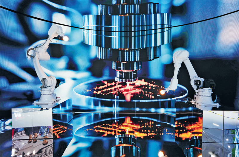 我国新质生产力在实践中加快形成,目前已经取得重大成就。2025年6月19日至24日,第9届中国—南亚博览会在云南昆明举行,数字经济、人工智能、绿色能源、低空经济等高科技展品琳琅满目,吸引众多观众参观体验。图为6月22日在博览会上拍摄的工业机械臂。 新华社记者 陈欣波/摄