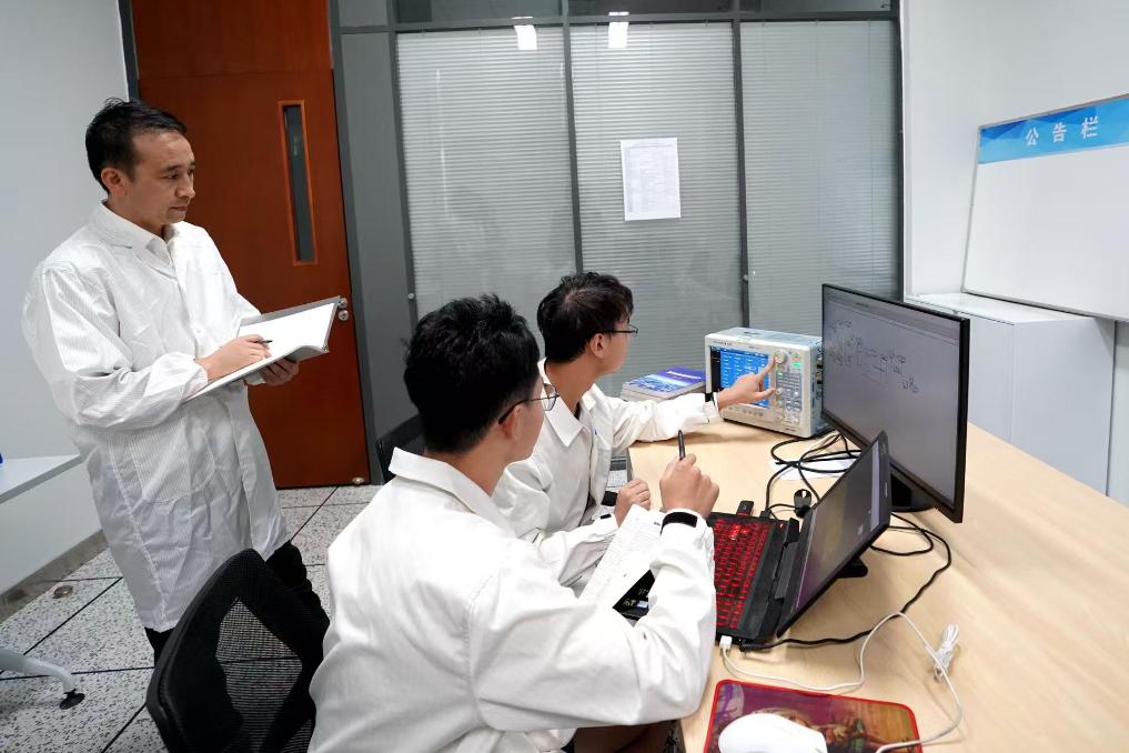 在南瑞集团—西安交大新型电力系统联合研发中心,企业导师正在带领学生开展联合研发工作。(受访者供图)