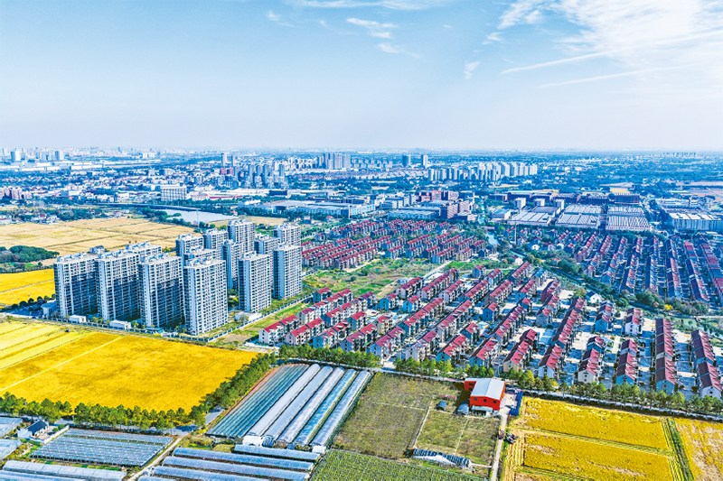 2003年浙江省启动“千村示范、万村整治”工程。20多年来,浙江嘉兴持之以恒实施“千万工程”,人居环境“大变样”、乡村产业“大转型”、城乡发展“大融合”,绘就了一幅生态美、产业美、生活美的新画卷。图为2025年11月18日,空中俯瞰嘉兴余新镇。 新华社记者 徐昱/摄