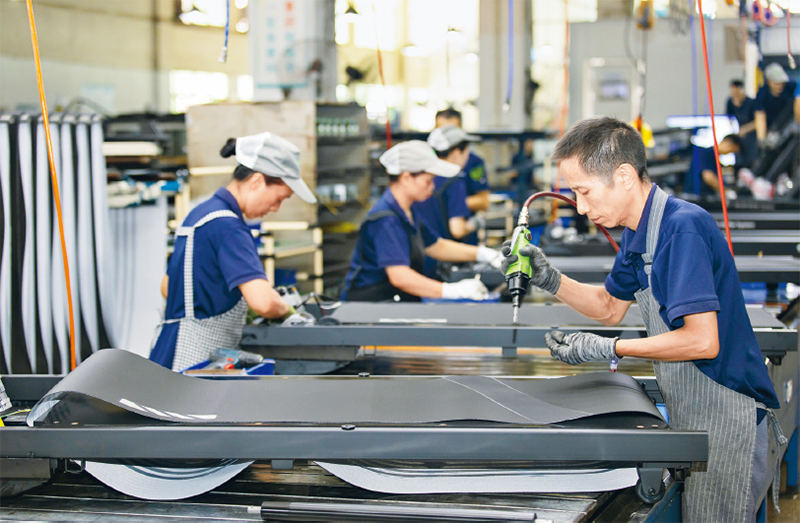 福建晋江通过提升县城产业承载能力和公共服务水平,使其成为吸纳农村人口城镇化的主阵地,又依托强大实体经济创造大量就业岗位,大力推进外来务工人员市民化,形成“全市一城、城乡共荣”的良好格局。图为2025年9月12日,晋江一家体育器材工厂的工人在车间流水线上组装跑步机。 新华社发 连静毅/摄