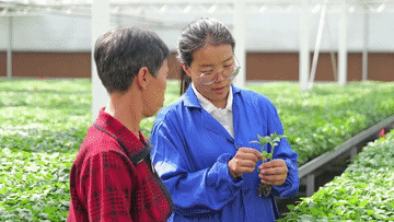 在她的育苗基地里,智能化设备随处可见,风机、湿帘、遮阳网、顶开窗协同运作,大棚内20多项环境参数,全在她的指尖精准掌控。