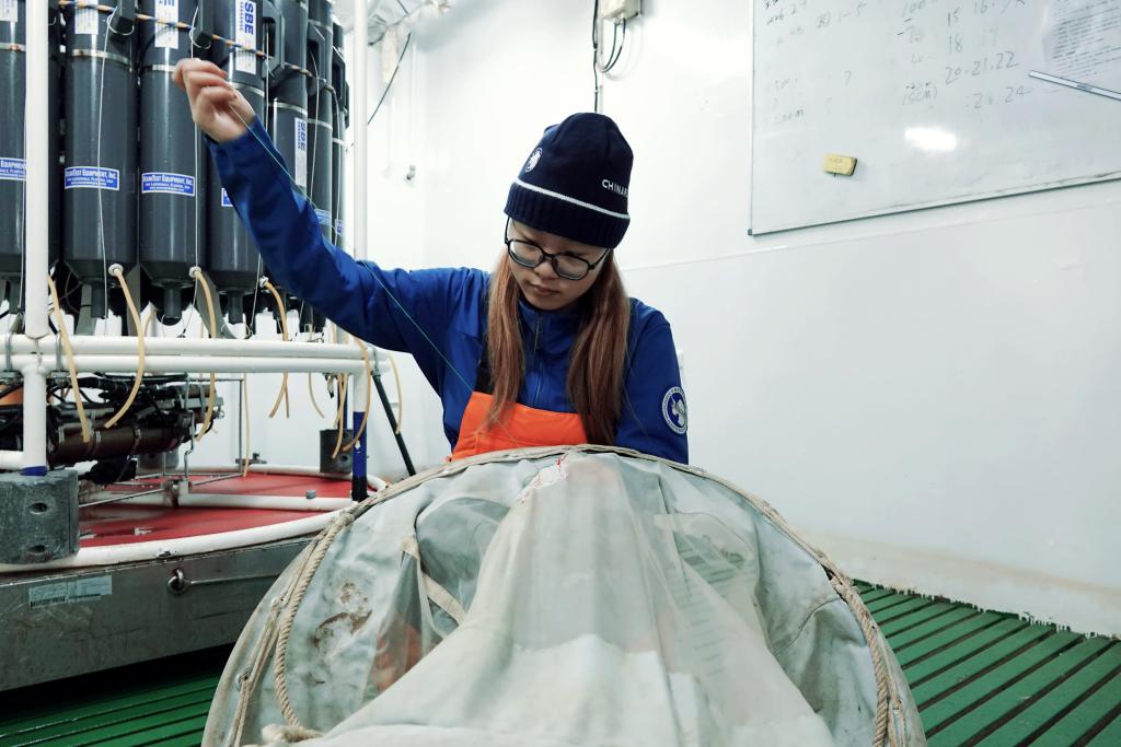 “父母虽然会想我,但觉得南极考察是我成长路上有纪念意义的经历。”这位安徽姑娘笑着说,她研究浮游动物昼夜垂直移动对生物泵的影响,每天在不同站位采集样本,分析中大型桡足类、藻类的群落结构等。