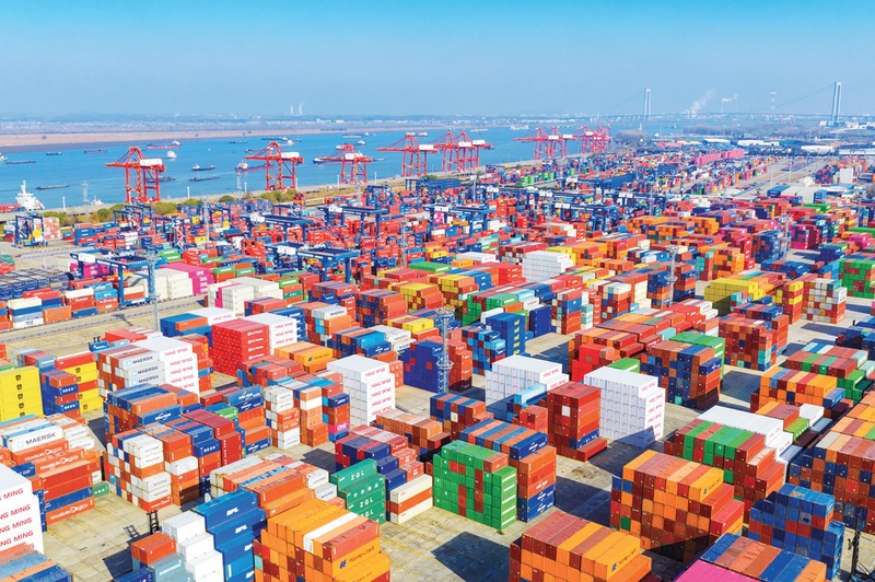 2025年,全球南方在维护和加强多边贸易体制、推动经济全球化更加普惠包容方面发挥着重要作用,成为推动重塑全球贸易格局的重要力量。作为全球南方天然一员的中国,2025年货物贸易进出口总值45.47万亿元,同比增长3.8%,自2017年起连续9年保持增长。图为2025年12月14日拍摄的江苏省港口集团南京港龙潭集装箱码头(无人机照片)。 新华社发 杨素平/摄