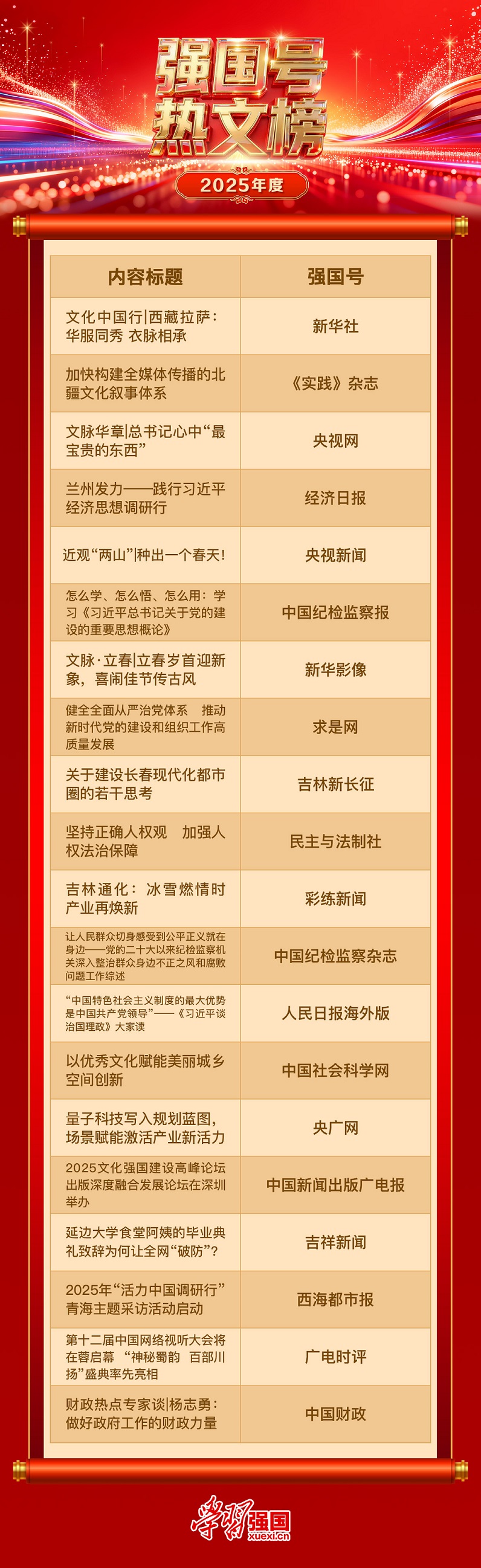 “学习强国”学习平台发布2025年度强国号榜单 - 求是网