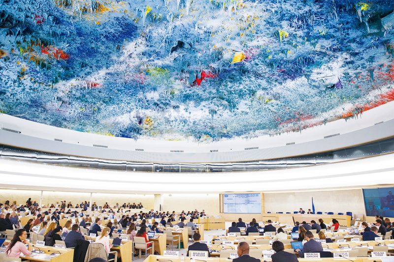 天下为公、天下大同的社会理想是构建人类命运共同体重大理念的历史文化源流。构建人类命运共同体重大理念提出后,被写入联合国社会发展委员会、安理会、人权理事会以及联合国大会裁军与国际安全委员会等机构的多项决议中,有力推动这一理念变成全球性共识。图为2017年3月20日,中国代表在联合国人权理事会第三十四次会议上代表发展中国家发言。3天后,人权理事会通过决议,明确表示要“构建人类命运共同体”。 新华社记者 徐金泉/摄