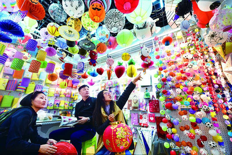 我國(guó)消費(fèi)市場(chǎng)日益成熟,吸引了世界各國(guó)消費(fèi)者前來(lái)購(gòu)物。圖為消費(fèi)者在位于浙江義烏的中國(guó)小商品城國(guó)際商貿(mào)城挑選燈籠。 新華社記者 龔獻(xiàn)明/攝