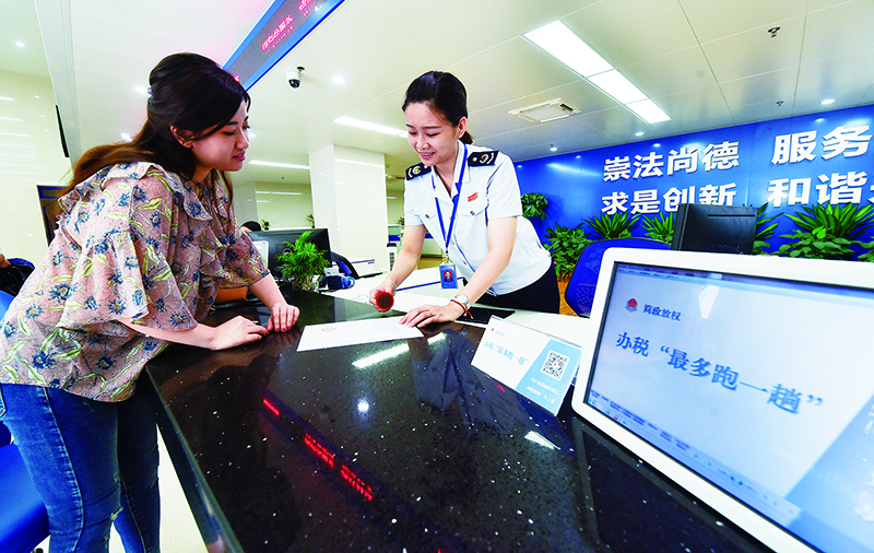 “放管服”改革為企業(yè)發(fā)展釋放活力。圖為福建地稅推行“最多跑一趟”優(yōu)化服務(wù),工作人員在為納稅人辦理涉稅業(yè)務(wù)。 新華社記者 宋為偉/攝