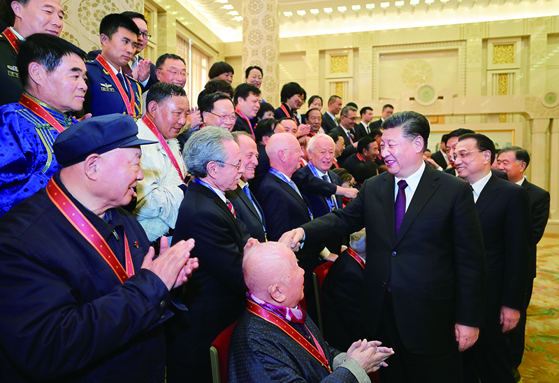 2018年12月18日,慶祝改革開(kāi)放40周年大會(huì)在北京隆重舉行。圖為慶祝大會(huì)結(jié)束后,習(xí)近平等黨和國(guó)家領(lǐng)導(dǎo)人會(huì)見(jiàn)受表彰人員及親屬代表。 新華社記者 鞠鵬/攝