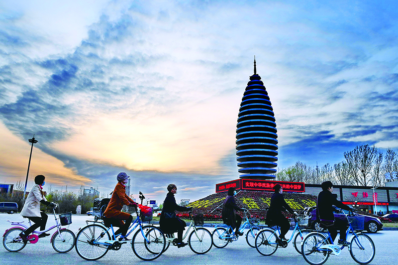 設(shè)立雄安新區(qū),是以習(xí)近平同志為核心的黨中央高舉新時(shí)代改革開(kāi)放旗幟作出的重大戰(zhàn)略舉措。圖為市民在河北雄安新區(qū)容城縣縣城道路上騎行。 新華社記者 牟宇/攝