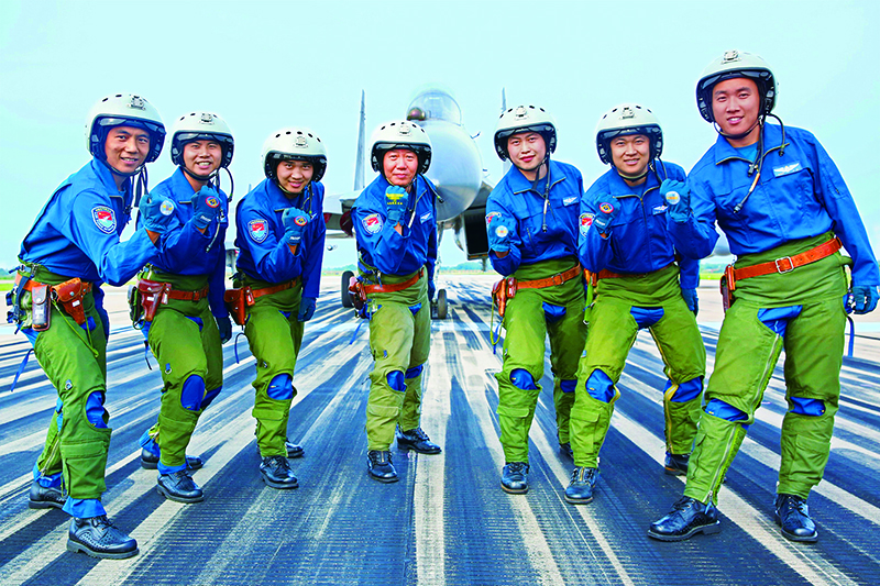 空軍航空兵某旅旅長郝井文(左四)和他的尖刀團(tuán)隊(duì) 韋忠梁/攝