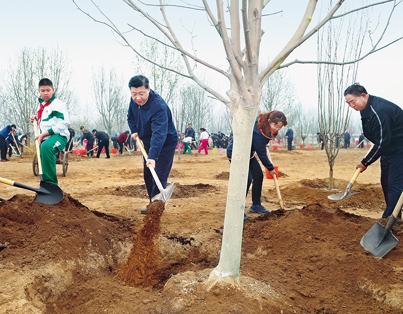 2018年4月2日,黨和國家領導人習近平、李克強、栗戰(zhàn)書、汪洋、王滬寧、趙樂際、韓正、王岐山等來到北京市通州區(qū)張家灣鎮(zhèn)參加首都義務植樹活動。這是習近平同大家一起植樹。 新華社記者 謝環(huán)馳/攝