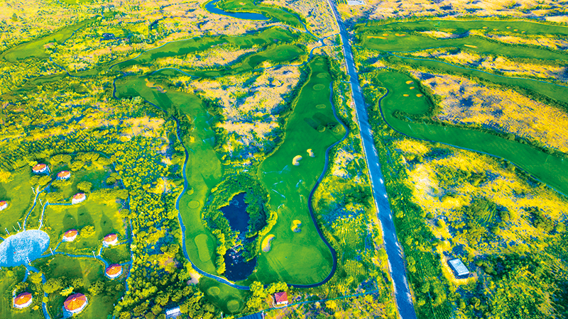 庫布其沙漠是中國第七大沙漠,這里曾經(jīng)一片荒涼,揚(yáng)塵、沙塵暴肆虐。經(jīng)過幾代人的奮斗,如今成功實(shí)現(xiàn)了“人進(jìn)沙退”,“沙漠變綠洲”已不再是神話。圖為庫布其沙漠中的七星湖景區(qū)。 新華社記者 彭源/攝