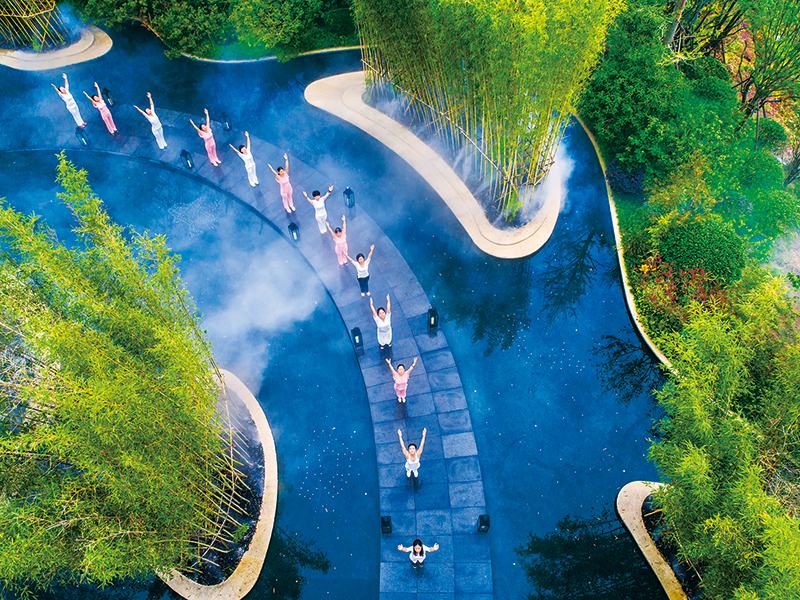 浙江省淳安縣,人們在美麗的千島湖畔健身。 新華社記者 徐昱/攝
