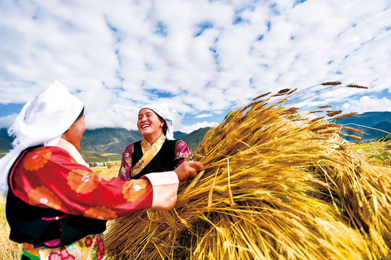 經(jīng)黨中央批準(zhǔn)、國(guó)務(wù)院批復(fù),自2018年起,將每年農(nóng)歷秋分設(shè)立為中國(guó)農(nóng)民豐收節(jié),這是第一個(gè)在國(guó)家層面為農(nóng)民設(shè)立的節(jié)日,進(jìn)一步彰顯了“三農(nóng)”工作重中之重的基礎(chǔ)地位。 圖為2018年9月23日,首個(gè)中國(guó)農(nóng)民豐收節(jié),拉薩市林周縣松盤鄉(xiāng)松盤村兩名藏族農(nóng)民在田間。 新華社記者 覺(jué)果/攝