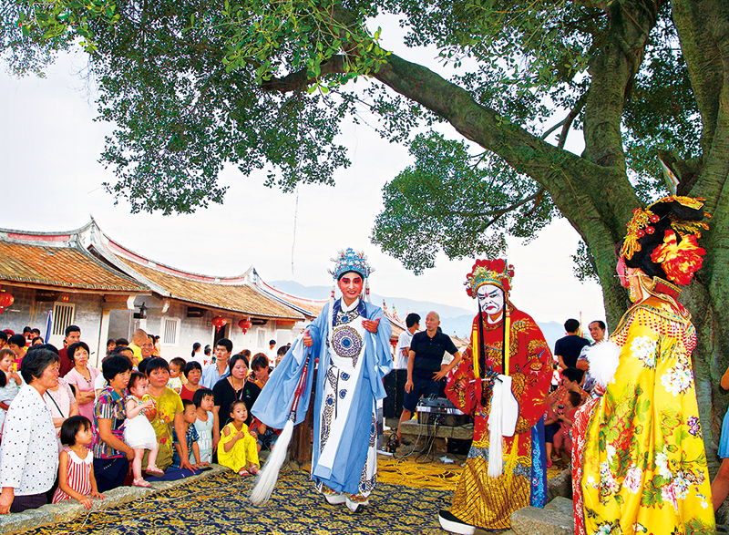 福建省龍海市東園鎮(zhèn)埭美村是閩南紅磚建筑文化的杰出代表,被稱為“水上古村落”。近年來(lái),當(dāng)?shù)卮罅?shí)施鄉(xiāng)村振興戰(zhàn)略,對(duì)環(huán)境進(jìn)行整體改造提升,村容村貌煥然一新,鄉(xiāng)村文化發(fā)展繁榮。圖為2018年6月21日,一家薌劇團(tuán)在埭美村榕樹下表演傳統(tǒng)薌劇《貍貓換太子》,吸引眾多居民及游客。 新華社記者 姜克紅/攝
