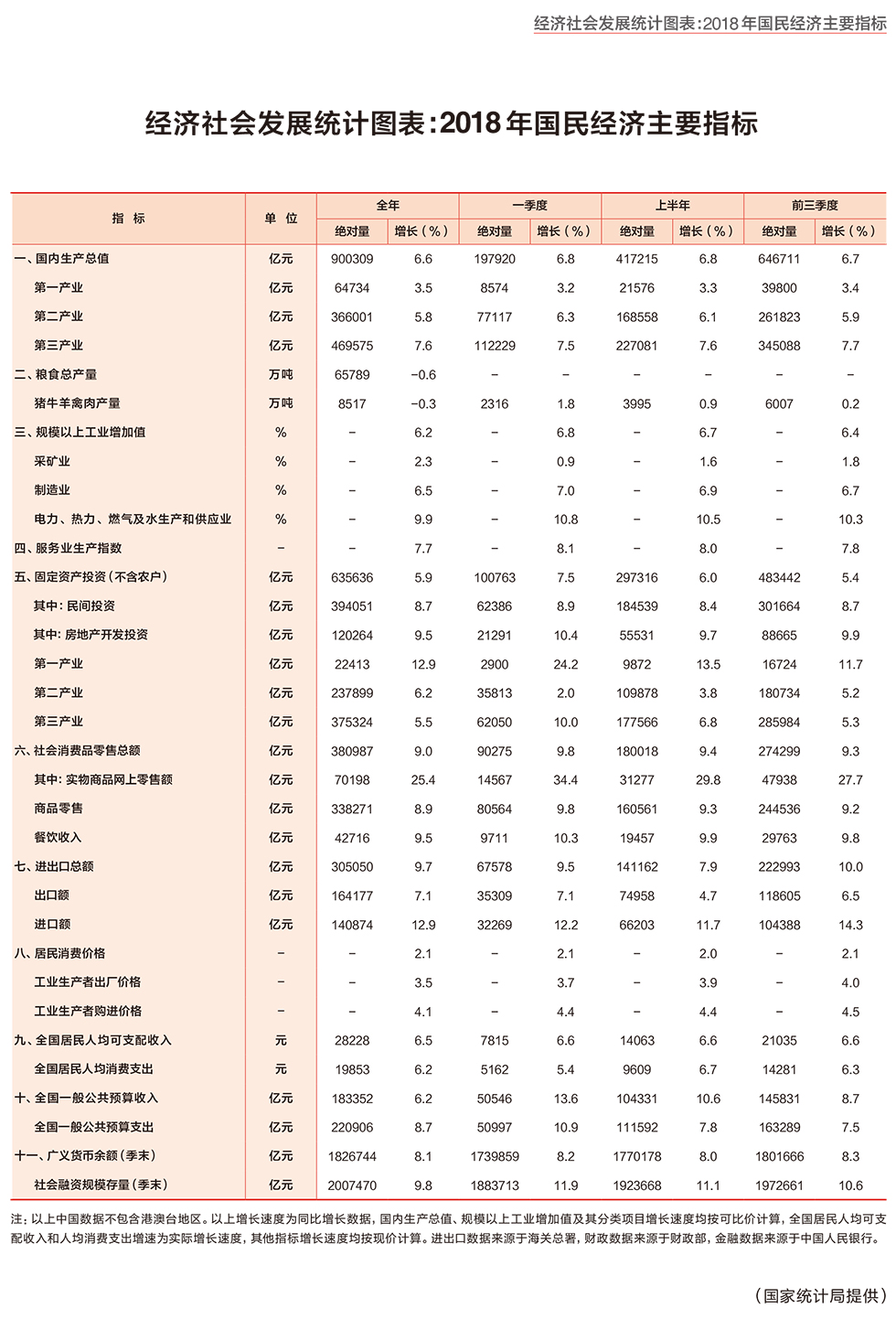 經(jīng)濟社會發(fā)展統(tǒng)計圖表:2018年國民經(jīng)濟主要指標(biāo)