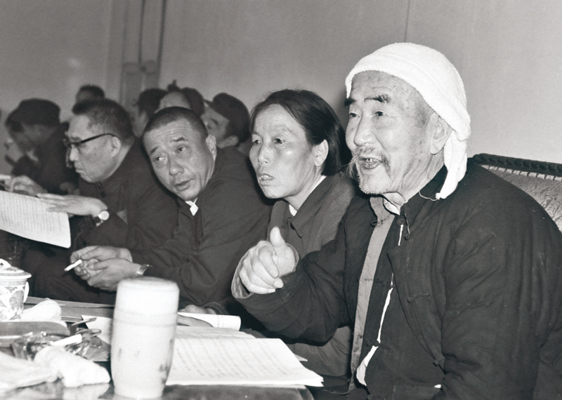 1982年11月29日,出席五屆全國(guó)人民代表大會(huì)第五次會(huì)議的山西省代表團(tuán)分組審議憲法修改草案。圖為全國(guó)勞動(dòng)模范、植棉能手吳吉昌在發(fā)言。 新華社記者 王新慶/攝