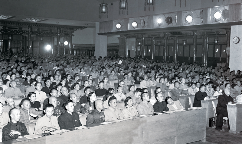 新中國(guó)成立后的第一次全國(guó)人民代表大會(huì),1954年9月15日在北京中南海懷仁堂隆重開幕。圖為第一次全國(guó)人民代表大會(huì)會(huì)場(chǎng)(資料照片)。 新華社發(fā)