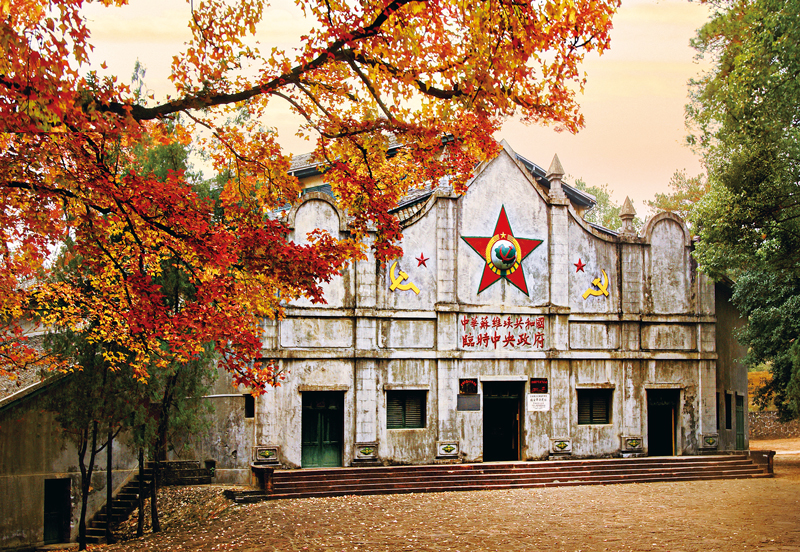 1934年1月21日,中華蘇維埃第二次全國代表大會在瑞金沙洲壩大禮堂隆重開幕,693名正式代表和83名候補(bǔ)代表,以及1500余名旁聽代表齊聚沙洲壩臨時中央政府大禮堂。圖為“二蘇大會”舊址。 江西省人大常委會供圖