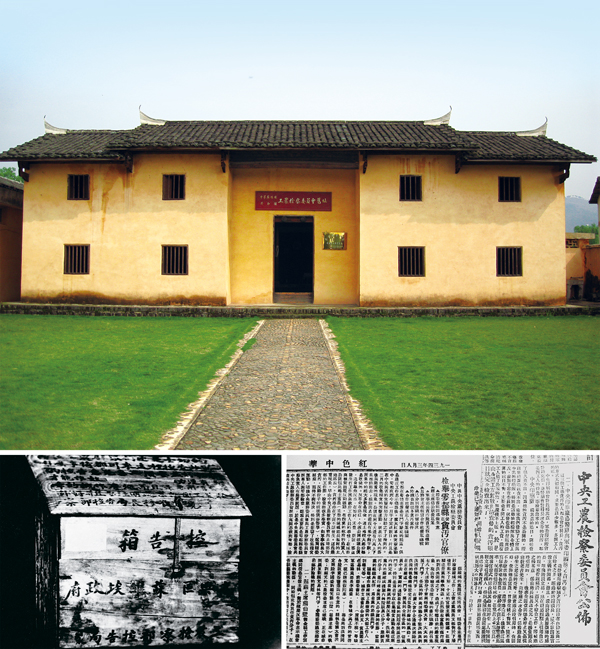 在中央蘇區(qū)、延安時(shí)期,我們黨探索了一套對(duì)蘇維埃政府、邊區(qū)政府和革命根據(jù)地人民政權(quán)組織及其工作人員的監(jiān)督辦法。 上圖為江西瑞金中華蘇維埃共和國(guó)工農(nóng)檢察委員會(huì)舊址;下左圖為當(dāng)年江西興國(guó)縣高興區(qū)蘇維埃政府工農(nóng)檢察部設(shè)置的控告箱;下右圖為《紅色中華》報(bào)關(guān)于中央印刷廠等單位貪污案查處結(jié)果和檢舉于都縣蘇維埃工作人員營(yíng)私貪污案的報(bào)道。 中共江西省贛州市委黨史辦供圖