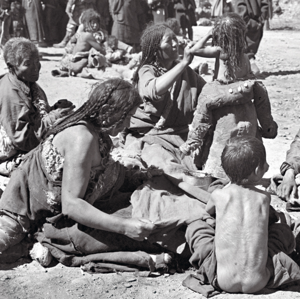 西藏民主改革前,婦女的社會(huì)地位很低。西藏民主改革后,婦女的社會(huì)地位迅速提高。上圖為1960年面帶笑容的拉薩青年婦女(人民畫報(bào) 何世堯/攝)。下圖為民主改革前饑寒交迫的女奴(資料圖片 西藏日?qǐng)?bào)社供圖)。