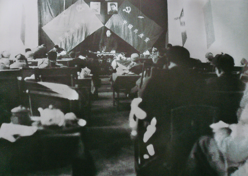 1949年3月5日至13日,黨的七屆二中全會在河北省平山縣西柏坡召開,毛澤東在會上作報告。圖為當時的會議現(xiàn)場。