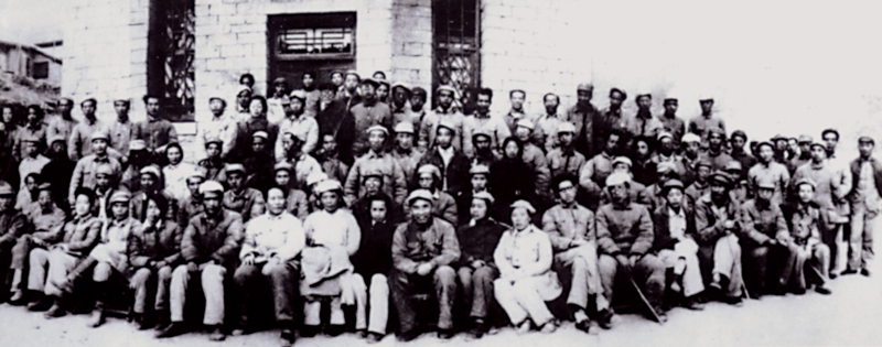 1942年5月2日至23日,在延安整風(fēng)期間,毛澤東同志親自主持召開(kāi)了有文藝工作者、中央各部門(mén)負(fù)責(zé)人共100多人參加的延安文藝座談會(huì)。圖為延安文藝座談會(huì)代表合影(吳印咸/攝)。