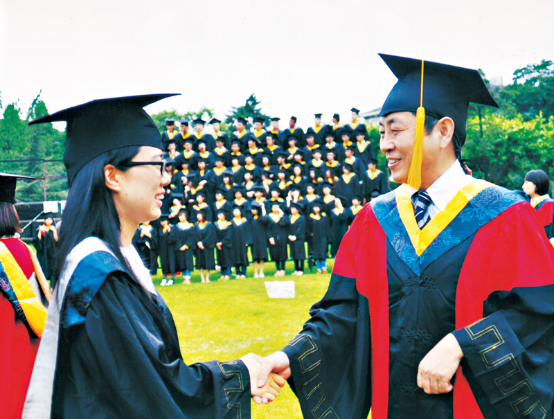 趕到學校的時候,操場上已經站滿了穿著學士服的同學們。