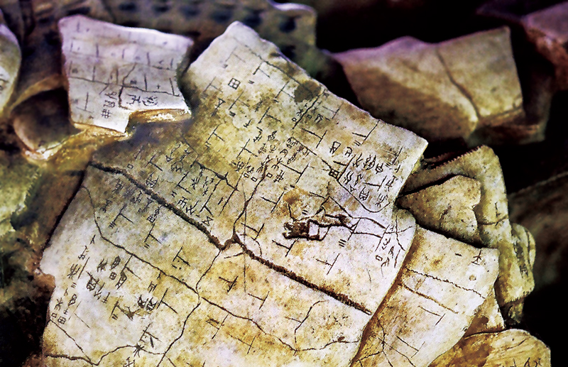 文字的出現(xiàn),是人類進(jìn)入文明時(shí)代的重要標(biāo)志。甲骨文是一種刻寫(xiě)在龜甲與獸骨上的中國(guó)古老文字,又稱“契文”、“甲骨卜辭”或“龜甲獸骨文”,是目前中國(guó)已發(fā)現(xiàn)的最早的成熟文字。殷墟甲骨文距今3000多年,3000多年來(lái)漢字結(jié)構(gòu)沒(méi)有變,這是中華文明傳承的重要標(biāo)志,也是人類共同的精神財(cái)富。圖為從殷墟遺址甲骨窖穴內(nèi)發(fā)掘出土的刻有文字的龜甲。 新華社記者 王頌/攝