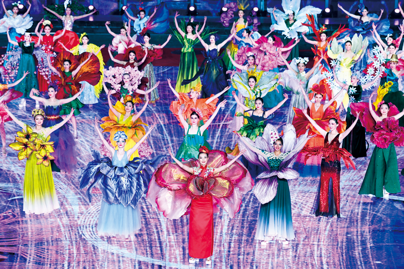 2019年4月28日,世界園藝博覽會(huì)開(kāi)幕式在北京延慶舉行。在以“美麗家園”為主題的文藝晚會(huì)上,中國(guó)古典舞《彩蝶的虹橋》,以翩翩起舞的蝴蝶展現(xiàn)了大自然的五彩斑斕。各國(guó)模特身著參展國(guó)的名花圖案服飾,用五彩繽紛的花語(yǔ)共敘友誼。圖為演出現(xiàn)場(chǎng)。 新華社記者 申宏/攝