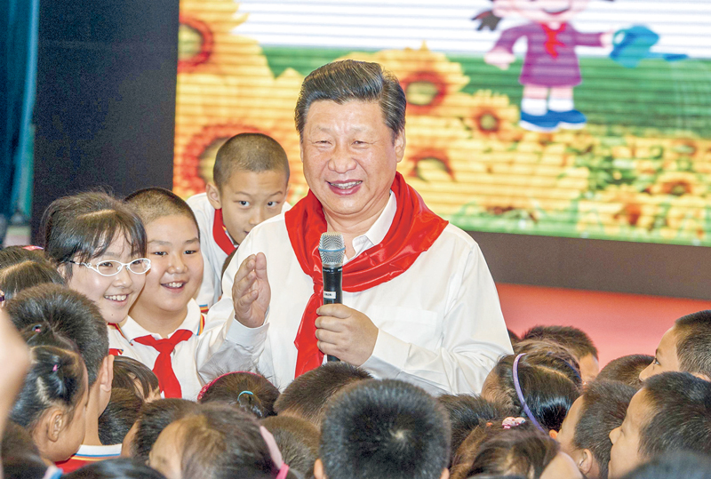 2014年5月30日上午,中共中央總書記、國家主席、中央軍委主席習(xí)近平來到北京市海淀區(qū)民族小學(xué),參加慶?!傲弧眹H兒童節(jié)活動。這是習(xí)近平在參加少先隊(duì)入隊(duì)儀式時(shí),向少先隊(duì)員們致以節(jié)日問候。 新華社記者 謝環(huán)馳/攝