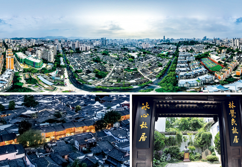 “一片福州三坊七巷,半部中國近代史?!?0多年前,在時(shí)任福州市委書記習(xí)近平主持下,一場搶救林覺民故居的緊急行動,讓三坊七巷保住了文脈,留住了鄉(xiāng)愁。上圖為福建省福州市三坊七巷航拍圖(楊素平/視覺中國)。左下圖為三坊七巷夜色(陳浩/視覺中國)。右下圖為林覺民故居,后被冰心祖父買下(小米/視覺中國)。